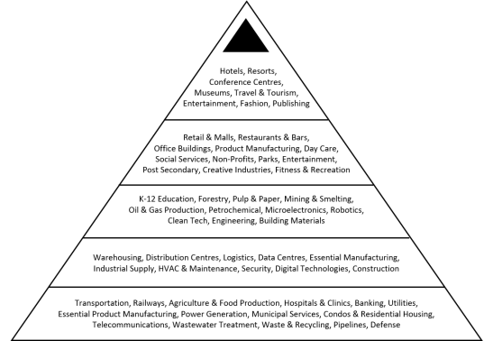 What will be interesting is how consumers and industries come out of this. It is hard to imagine a declaration stating that “COVID is now over, please go back outside and resume your lives.” Rather, like restarting a manufacturing plant, the economy will likely return to full production in gradual phases. For that, we may want to draw on an augmented version of Maslow’s Hierarchy of Needs and apply it to industry sectors.  Starting at the bottom with the most basic economic needs and working our way up is an interesting view to how to rebuild or reopen the economy. Also of interest are the questions surrounding which industries or human activities simply do not return – a topic of many subsequent posts.